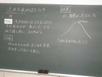 理科の「流れる水の働き」をタブレットを使って学習しました。
