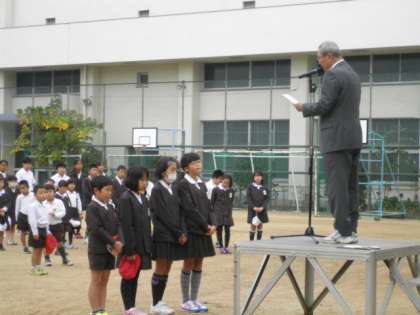 校長先生から、作品展についてのお話がありました。保護者の方や地域の皆様から、たくさんお褒めの言葉をいただきました。ありがとうございました。続いて、4人の児童が夏休みの自由研究で大阪市教育研究会理科部から努力賞を受賞したので、表彰されました。