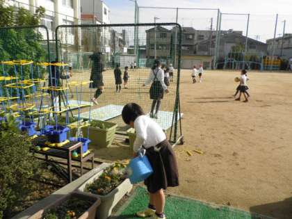 ボール遊びをする子、なわとびの練習をする子、栽培同好会の仕事(水やり)をする子・・・日差しが暖かく、子どもたちは昼休みを楽しく過ごしています。