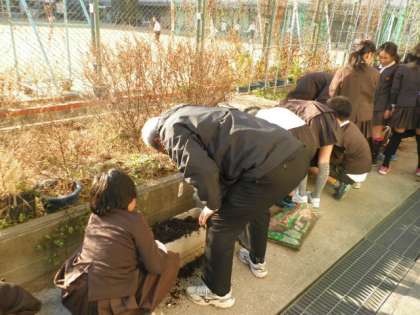 植え替えた後は、育てているマリーゴールドやパンジー、キンギョソウなどの花がらを摘んだり雑草を抜いたりしました。