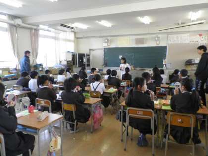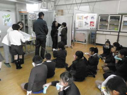 歯科衛生士さんから正しい歯の磨き方を教えていただき、教室で歯みがきをしてから保健室でフッ化物を塗布しました。