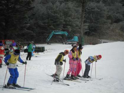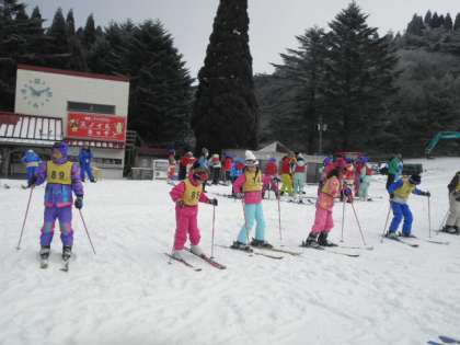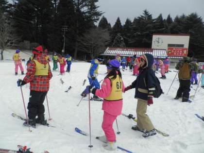 午前中はスキーの基本的な動作や扱い方について講習を受けました。初めは立つのもやっとでしたが,少しずつボーゲンで滑ることが出来るようになってきました。