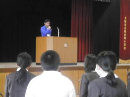 校長先生から、土曜に実施した防災体験学習についてお話がありました。「いつどこで災害が起こるかわかりません。自分で自分の身を守れるように、訓練することが大切です。」ご家庭でも避難場所等について、話し合われたでしょうか。当番の先生からは今月の目標「手洗い・うがいをしよう」について話がありました。