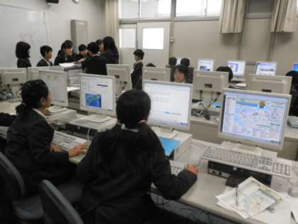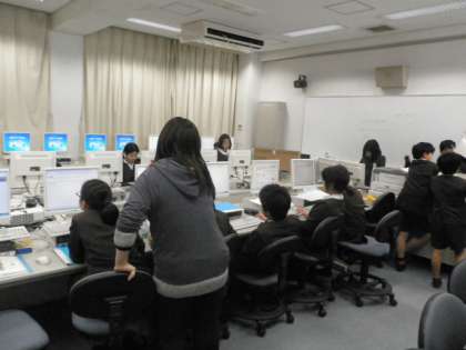 パソコンルームで5年生が調べ学習をしていました。先週の出前授業で教えていただいた地震や津波について、グループにわかれてさらに詳しく学習しています。