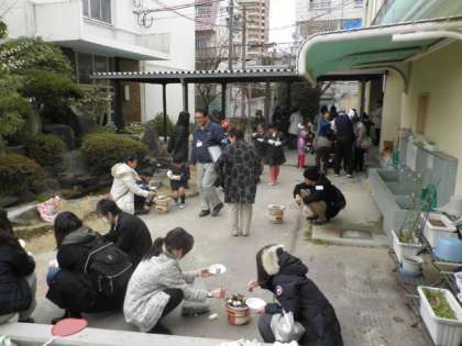 3年生は地域の方にも協力していただいて、七輪を使った体験学習です。
