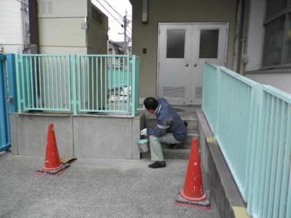 フェンスの錆やほこりをきれいに取り除いてから、ペンキを塗るそうです。