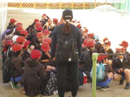 晴天のもと、運動場に集合してから出発しました。行先は神戸布引ハーブ園です。気をつけていってらっしゃい。
