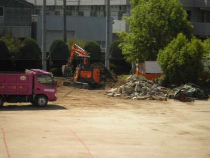 運動場では整地が進んでいます。日々の変化を記録したいと思います。素敵な校舎と運動場に生まれ変わることを願って・・・