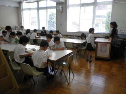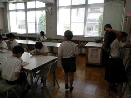 2時間目終了後の15分休みに、はぐぐみコーディネーターの皆さんのご協力で、図書館開放をしています。子どもたちがさっそく新しい本を見つけて読んでいました。