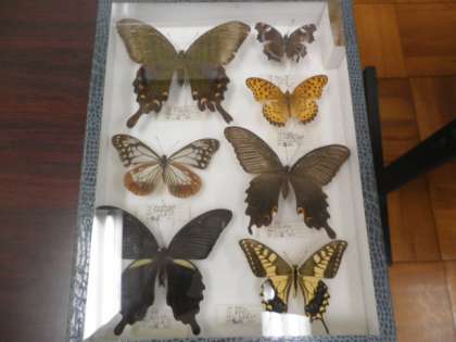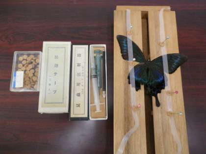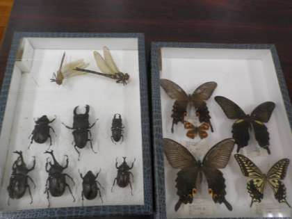 校長先生の知り合いのミスターさとっちさんが見せてくださった昆虫の標本の一部です。標本作成キットを懐かしく思われる方もいらっしゃるのではないでしょうか。