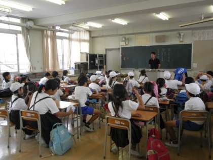 4年生が遠足から帰ってきました。オリエンテーリングをして楽しかったそうです。暑くて疲れたようです。家に帰りましたらお土産話をゆっくり聞いてくださいね。