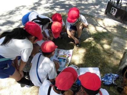 オリエンテーリングでは各班協力しながら周ることができました。チェックポイントの問題はなぞなぞや早口言葉、あったものなあにの問題に取り組みました。