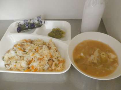 23日:かやくごはん・みそ汁・抹茶ういろう・きざみのり・牛乳