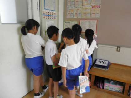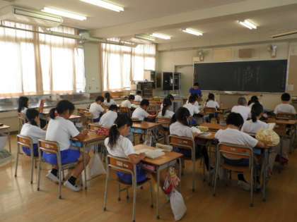 教室で静かに読んでいます。学級文庫から本を選んで読む子どももいます。