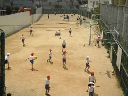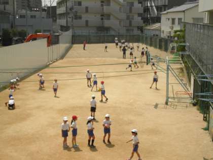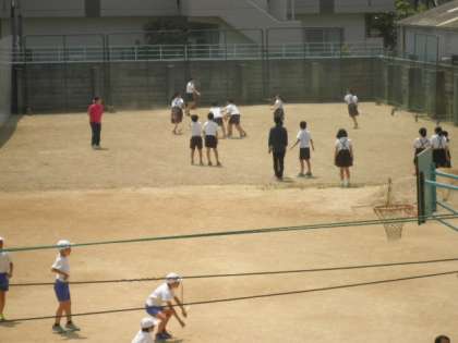 運動場が少し広がって、2つの学年が遊べるようになりました。2時間目のあとの休み時間には、3年生と6年生が遊びました。