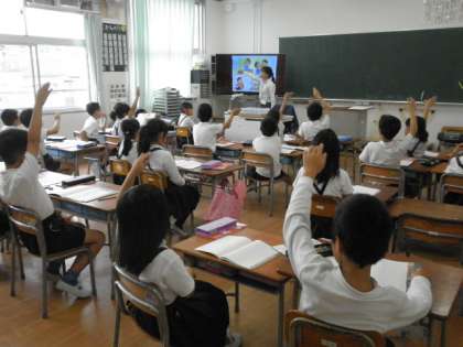 3年2組では、国語科「こそあど言葉を使い分けよう」の授業を講師先生に参観していただきました。