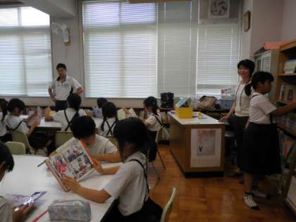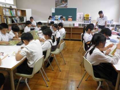 毎週水曜日には、図書館支援員の辻先生が子どもたちの読書活動を支援してくださいます。5月31日の午前中には低学年へ遠足に関する読み聞かせをしてくださいました。5時間目には4年生が読書をしていました。