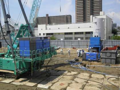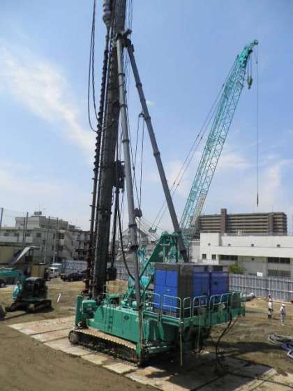 大きなクレーン車が来て、杭打ちの作業をしていました。