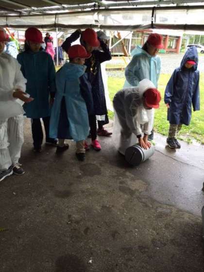 材料を混ぜ合わせて冷却器に入れて転がします。自分達が作ったアイスの出来上がりに、「すごい」と歓声が上がりました。