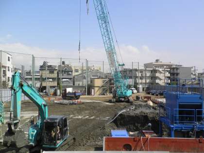杭打ち工事の続きをしています。学校が休みの日も工事をしています。土曜日曜に校庭を使用できるのは、事前に届け出が済んでいる団体のみです。危険ですので、工事現場側には入らないでください。ボール等が入らないようにお願いします。