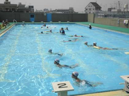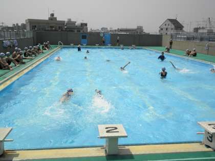 23日の2時間目に5,6年生がプール開きをしました。雨などの影響で延びていたプール開き、さっそくクロールや平泳ぎをしていました。さすが、5,6年生ですね。