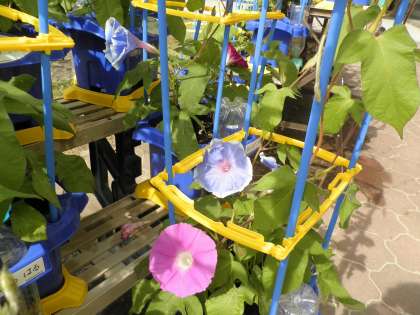 アサガオの花が咲きだしています。梅雨とはいえ先週は晴天続きでしたので、子どもたちは水やりをはりきってしていました。今週の土曜授業で学校に来られたら、ぜひご覧ください。