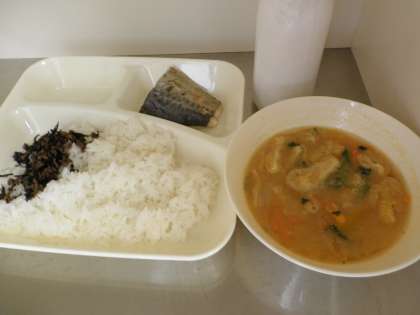 献立は、さごしの塩焼き・みそ汁・牛ひじきそぼろ・ごはん・牛乳でした。