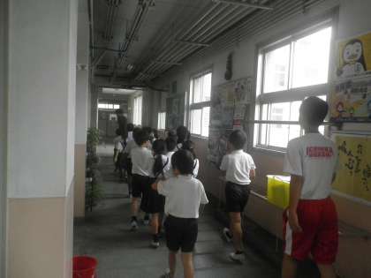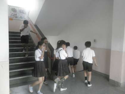 2時間目に避難訓練を実施しました。職業体験の中学生も一緒に講堂へ避難しました。