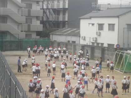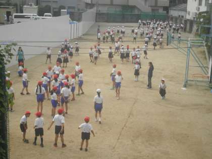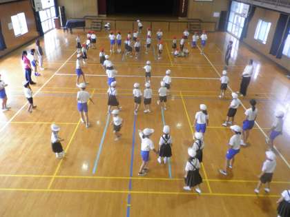 今日は2学年交流で、1年と6年、2年と5年、3年と4年にわかれて、それぞれドッジボールをしました。