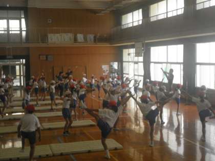 柔軟体操から前転後転、開脚後転や側転のコツを教えていただきました。