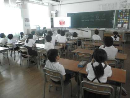 3年1組はいつもの英語活動ですが、3年2組にはビルギル先生(C-Net)が英語の絵本を読んでくださいました。(1組には以前に来ていただいたので、今日は2組でお願いしました。)