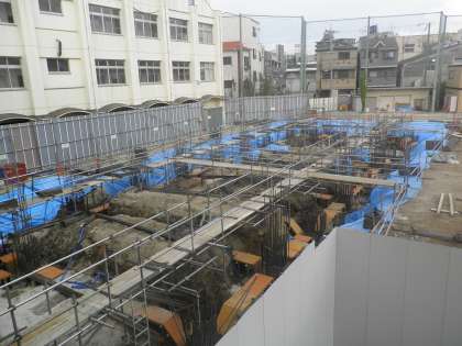校舎が建つ場所の地中に梁を組み立てるそうです。