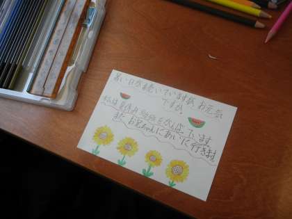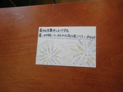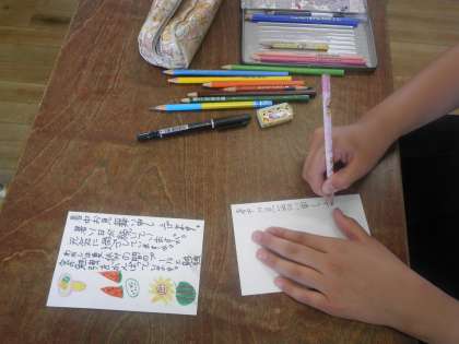 暑中見舞いのあいさつ文を書いたあと、夏らしい絵を描いていました。誰に届くのか、楽しみですね。