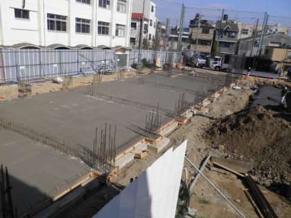 午後には、生コンが一面に流し込まれました。急ピッチで進められているようです。