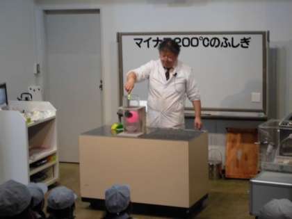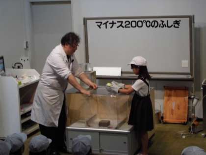 ここでクイズです。マイナス200度の液体窒素の中に、空気でふくらんだ風船を入れるとどうなるでしょう?答えは4年生に聞いてみてください。