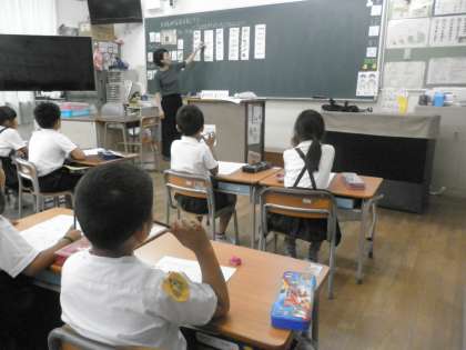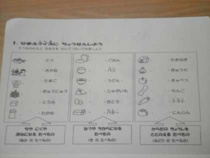 栄養教諭の有賀先生が磯路小学校から来てくださり、「たべもののなまえをしろう」というテーマで授業をしてくださいました。