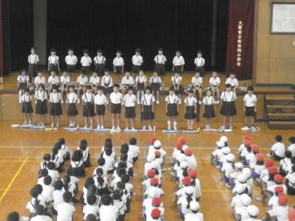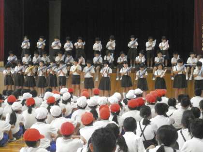 2年生が合奏「山のポルカ」、合唱「ドレミのうた」などを発表しました。