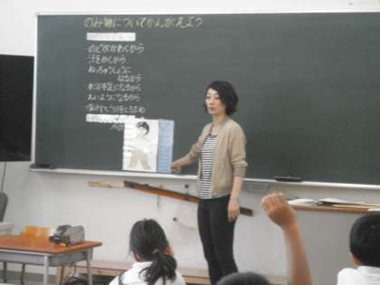 磯路小学校の栄養教諭の有賀先生から「飲み物について考えよう」と、教えていただきました。