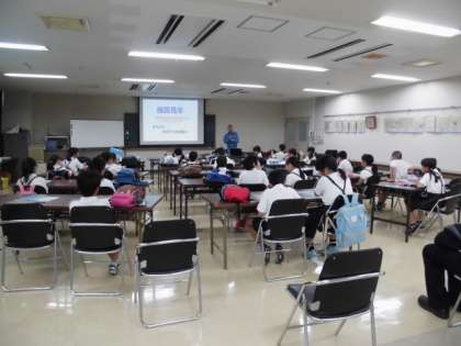 4年生全員で市岡下水処理場へ社会見学に行きました。トイレやお風呂の水がどのようにしてきれいな水に変わるのか学習することができました。ちなみにマンホールのふたから、下水の流れる方向が分かるんですよ。