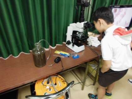 下水をきれいな水に変えるには、微生物の働きが欠かせません。4年生のみんなもその微生物を顕微鏡で観察しました。
