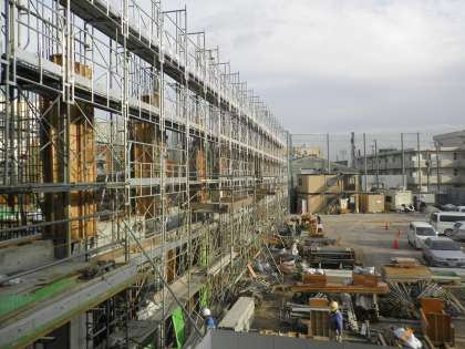 新校舎3階の作業が始まり、次々と資材が積み上げられていきます。