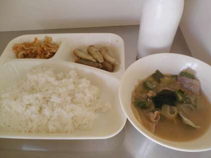 21日 いわしてんぷら、みそ汁、切り干し大根の炒め煮、ごはん、牛乳