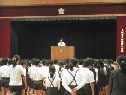 校長先生が、「今週の木曜と金曜に、6年生が修学旅行に行きます。6年生がいない間、5年生を中心に学校生活を送りましょう。次の学年に上がる準備が始まります。」とお話されました。当番の山口先生から、生活目標「なんでも食べてよい体をつくろう」について、寒くなってきたので体調管理のお話がありました。