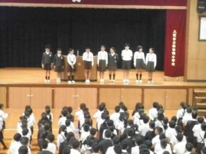 後期代表委員の自己紹介がありました。4年生から6年生の各学級代表の児童たちが、学校のため、みんなのためにがんばります。
