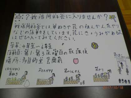 今日の栽培同好会では、ポスター作りをしました。