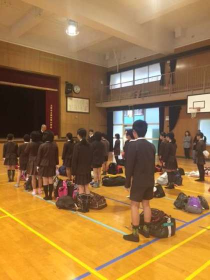 6年生が志摩・鳥羽方面へ修学旅行に行きます。雨が降っていますが、21人全員が元気に出発しました。