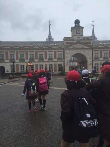 たくさんの小学生で賑わっています。小雨の中、元気にグループ活動を始めました。