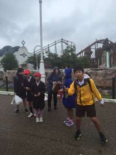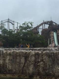 アトラクションに乗る人、待つ人、お土産を選びに行くグループ、それぞれ楽しんでいます。