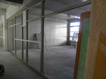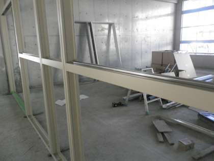 内部はコンクリートが打ちっぱなしの状態で、これからモルタルやタイルを貼る工程へ移るそうです。窓枠にはサッシが入り、壁ができます。