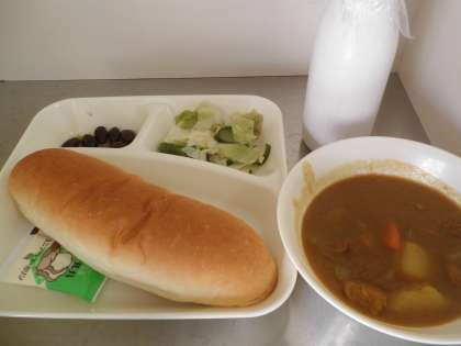 6日 豚肉と野菜のカレー煮、サワーサラダ、うずら豆のグラッセ、